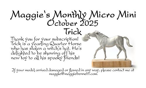 We are offering a time payment option of $65 monthly for 6 months, billed through PayPal's automatic subscription service. If you choose this option but decide to pay off your horse early, just email us and we can get that sorted out for you! Please note that time payments are non-refundable. Time payments include USA shipping; we will invoice international purchasers for additional postage.