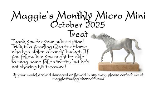We are offering time payments on this batch, but you are also welcome to pay off in full and receive your horse immediately. Use the button below to pay a $95 (plus shipping) deposit, then we will invoice you for the remaining $400. We will ship your model once you've paid the invoice. You may take up to six months to pay off the invoice if you like, and you may make partial payments/time payments on the invoice. Please be sure that the email address attached to this initial payment is one you check regularly so you don't miss the invoice! These deposits are non-refundable. This batch is cast and ready to ship.