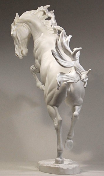 Meet Superlumina! Originally designed as a companion piece for Supernova, Superlumina stands out by herself, too! She is a frisky Arabian mare, leaping with a flick of her tail. Superlumina is an original sculpture, completed in Apoxie Sculpt and then produced in an edition of approximately 180 pieces.