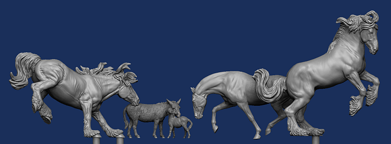 Each venti is a new version of a micro mini sculpted by Maggie. Each one has been modified for the new scale: mirrored, but also heavily reworked to add details and make modifications wherever needed to make each piece as good as I can in this larger scale. Modifications that had to be made to make each piece "work" as a micro mini have been undone, mane and tails have been resculpted, and delicate texturing and detailing has been added to each piece. I'm still working on the very last details, so expect some changes from the images of the micro minis here!